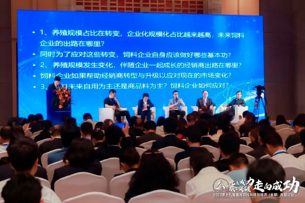 2023年4月18-20日,“第十九届畜牧饲料科技与经济(全球)高层论坛”在河南南阳召开。应论坛创始人蔡辉益博士、论坛轮值主席、牧原集团董事长秦英林之邀,新希望六和董事长刘畅率队,携公司首席科学家闫之春、工程运营总监李爽、饲料产业总裁贾友刚、食品产业总裁刘怀伟、饲料研究院院长周桂莲等十余名高管全程参与,与国内外产学研各界精英700余人共话原料替代、生产成本、肉食加工等产业发展议题。