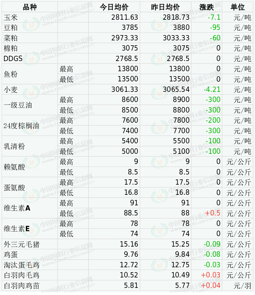 24日玉米价格继续走低。最低收购价稻谷竞价销售公告发布,拍卖将于3月28日开始,当期投放量90万吨,其中2018年产稻谷28万吨,2019年产40.5万吨,2020年产21.5万吨 。起拍价2018年早籼稻2380,中晚籼稻2480,粳稻2520,年份差50元/吨,等级差40元/吨。虽然稻谷投放的量同比少了一半,但是对市场有所利空影响。3月下半月中国养殖及饲料生产加工市场将继续缓慢恢复,但总体上将继续处于季节性淡季阶段,中大畜禽占比继续提高及个体采食量将继续提高推动饲料产消量总量止降转增长,理论上玉米月度消耗总量环比将止降转增长。随着高水分玉米逐步出尽,种植户及贸易商等持粮主体惜售情绪有所提升,预判3月下半月,随着消耗需求增幅适度提高需求终端新增采购需求增幅提高影响,玉米价格跌幅放缓、止跌回涨的几率在逐步提高。但3月下半月玉米价格总体依旧偏弱走势为主,3月份月度均价环比继续小幅下跌的可能性更大。